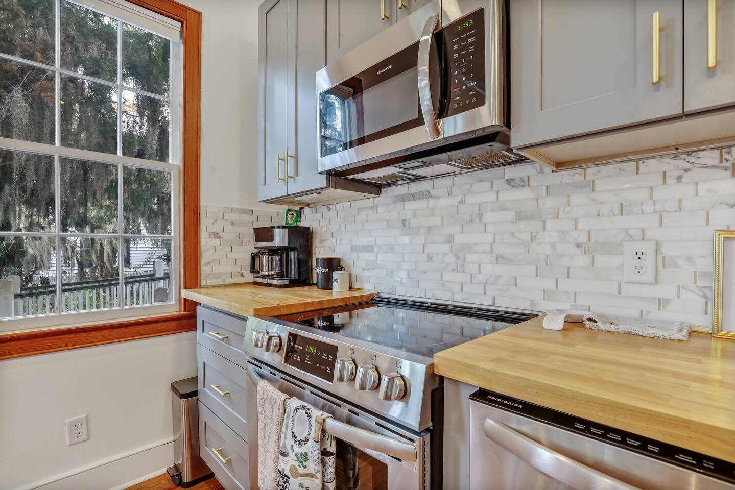 ⭑Master Bedroom:⭑ ✔ Unwind in the spacious king-sized bed, surrounded by antique charm. ✔ Store your belongings in the elegant antique dresser. ✔ A small workspace is perfect for any remote work. ✔ Wind down with your favorite shows on the TV. ⭑Second Bedroom:⭑ ✔ This room features another king-sized bed, ensuring maximum comfort. ✔ Extra storage with a dresser, plus a TV for entertainment. ⭑Living Room:⭑ ✔ Step into the inviting living area, a perfect reflection of the home’s historic character. ✔ Ideal for gathering with friends or family after a day of exploring Beaufort. ✔ Enjoy a 58” Smart-TV and Bluetooth speaker for a cozy night in. ⭑Kitchen and Dining Area:⭑ ✔ The fully equipped kitchen comes with modern appliances, ready for cooking up your favorite meals. ✔ The dining area, with seating for four, offers a charming space to enjoy meals together and create lasting memories. ⭑Bathrooms:⭑ ✔ The full bathroom, just steps from the upstairs bedrooms, features a refreshing full-sized shower, great for refreshing after a long day. ✔ A convenient half-bath downstairs adds extra comfort. ⭑Outdoor Space:⭑ ✔ Spend time in the fully fenced backyard with a fire pit and gas BBQ grill, perfect for outdoor gatherings. ✔ Shared space with the neighboring property, ideal for groups traveling together (see QR Code in our photos, URL below, or contact us for more information)! ✔ Relax on the front porch, soaking in the beauty of the historic downtown area. ✔ Take a ride on the bikes provided or enjoy beach essentials, including towels, an umbrella, and beach chairs for your seaside adventures. ✔ A public playground is right next door on Greene St, perfect for families with children. ⭑Additional Amenities:⭑ ✔ Enjoy free Wi-Fi throughout the home. ✔ A washer and dryer are available for your convenience. ✔ We provide fresh linens and body soap for a hassle-free stay. ✔ Free annual parking and entrance pass to Hunting Island State Park ⭑Safety and Security:⭑ ✔ Equipped with smoke detectors, a fire extinguisher, and a first aid kit. ✔ Exterior security cameras at the rear entrance and parking area. ✔ Secure keypad entry for easy self-check-in. ⭑Entertainment and Connectivity:⭑ ✔ TVs in the living room and both bedrooms, along with board games and books for your enjoyment. ✔ High-speed Wi-Fi and a dedicated workspace ensure you can stay connected, whether for work or play. ⭑Heating and Cooling:⭑ ✔ Central air conditioning, ceiling fans, and a cozy indoor fireplace provide year-round comfort. ⭑Parking and Facilities:⭑ ✔ Free off-street parking offers easy access to the home. ✔ Just a short walk to shops, restaurants, the Waterfront Park, and Beaufort’s historic attractions. ⭑Services:⭑ ✔ Self-check-in with flexible arrival times. ✔ Professional cleaning services are provided between stays ✔ Additional cleanings during your visit provided for a small extra fee—perfect for keeping your space fresh and tidy throughout your stay. ⭑For Large Groups⭑ Traveling with a larger group? This home shares outdoor space with our neighboring property, making it ideal for groups traveling together. (see QR Code in our photos, copy/paste the URL below, or contact us for more information)! Second Property: airbnb.com/h/theworkshop1 ⭑Conclusion⭑ Your stay at Gallery 1897 promises cozy comfort, modern convenience, and an authentic Lowcountry experience. Perfectly situated for enjoying all that downtown Beaufort has to offer, this historic retreat is ready to host your next adventure. Book now and create memories that will last a lifetime! - Local Points of Interest - 🏙️ Historic Beaufort District – 0.3 mi / 6 min (walking) 🏛️ The Cobbler’s Cottage – 0.2 mi / 4 min 🎨 I. Pinckney Simons Gallery – 0.4 mi / 8 min 🍸 Hemingway’s Bistro – 0.4 mi / 8 min 🍽️ Saltus River Grill – 0.5 mi / 10 min 🍕 Panini’s On The Waterfront – 0.6 mi / 12 min 🥘 Plums Restaurant – 0.5 mi / 10 min 🍻 Old Bull Tavern – 0.3 mi / 6 min 🍺 Wren Bistro & Bar – 0.5 mi / 10 min 🎭 USCB Center for the Arts – 0.6 mi / 12 min 🎵 Arts Council of Beaufort – 1.0 mi / 20 min 🖼️ Thibault Gallery – 0.5 mi / 10 min 🎨 Legacy Art Gallery – 1.2 mi / 5 min drive ⛳ Glowcountry Mini Golf – 1.5 mi / 5 min drive 🚴♂️ Spanish Moss Trail – 2.0 mi / 6 min drive 🔬 Kazoo Museum at Kazoobie Kazoos – 1.8 mi / 6 min drive 🌲 Hunting Island State Park / Lighthouse – 12 mi / 20 min drive 📚 Pat Conroy Literary Center – 0.7 mi / 14 min 🪑 Wet Willie’s Daiquiri Bar – 1.0 mi / 4 min drive 🎖️ Parris Island Museum – 5 mi / 12 min drive 🍽️ Beaufort Restaurants 1. Old Bull Tavern – A vibrant gastropub known for its eclectic, market-driven menu and craft cocktails. A local favorite for wood-fired pizzas and lively atmosphere 2. Saltus River Grill – Located waterfront on Bay Street, this elegant spot offers contemporary American fare with locally sourced seafood and steaks—ideal for special evenings 3. Wren Bistro & Bar – A stylish neighborhood restaurant serving lunch and dinner with locally grown ingredients, microbrews, and curated wines 4. The Ribaut Social Club (Anchorage 1770) – This upscale dining venue, located in the historic Anchorage Inn, offers cocktails and regional cuisine with scenic water views 5. Plums Restaurant – A laid-back, waterfront lunch spot specializing in creative Lowcountry sandwiches, soups, and cocktails on Bay Street 6. Breakwater Restaurant & Bar – Serving "New Southern Cuisine" in historic downtown, known for seasonal seafood, steaks, and Southern flair Other notable options: Panini’s on the Waterfront (Italian/seafood), Q on Bay (creative barbecue), Blackstone’s Café(classic breakfast), and Lowcountry Produce Café (farm-to-table breakfast/lunch). 7. Hearth Pizza - tasty wood-fired pizza in a relaxed atm